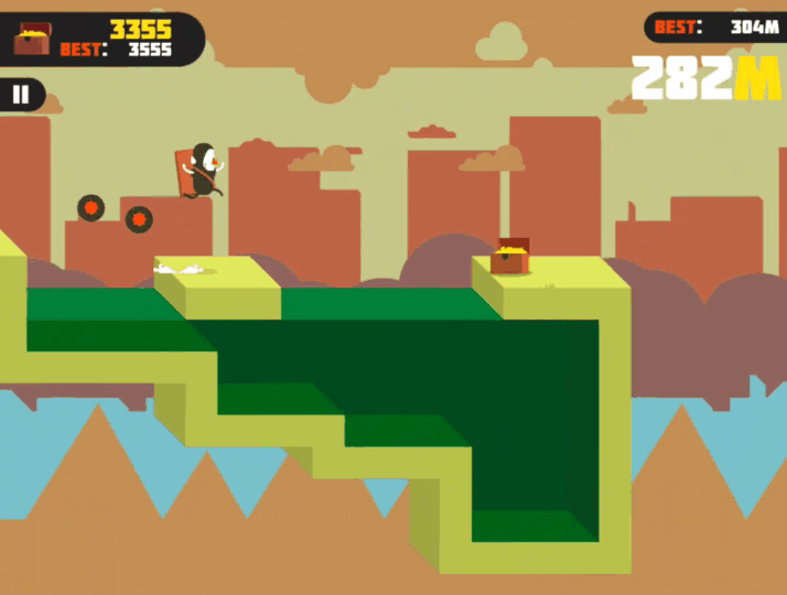 장애물을 뛰어넘기 위해서는 랜덤으로 지급되는 파워업이 필수입니다. 플레이어는 죽음의 함정이 가득한 맵을 달리고 점프하고 활공하여 이동거리 최고기록을 세워야합니다.