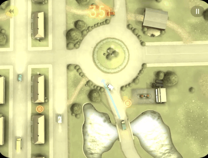 제한시간 내에 열 명이 넘는 인물들의 차량을 모두 출구까지 이동시키려면 보도를 침범하고 집과 나무를 아슬아슬하게 피해서 지름길로 가는 것이 중요합니다. 게임을 진행할수록 작은 도시는 점점 더 많은 교통량을 통제해야 하는 혼잡한 대도시로 변해갑니다.