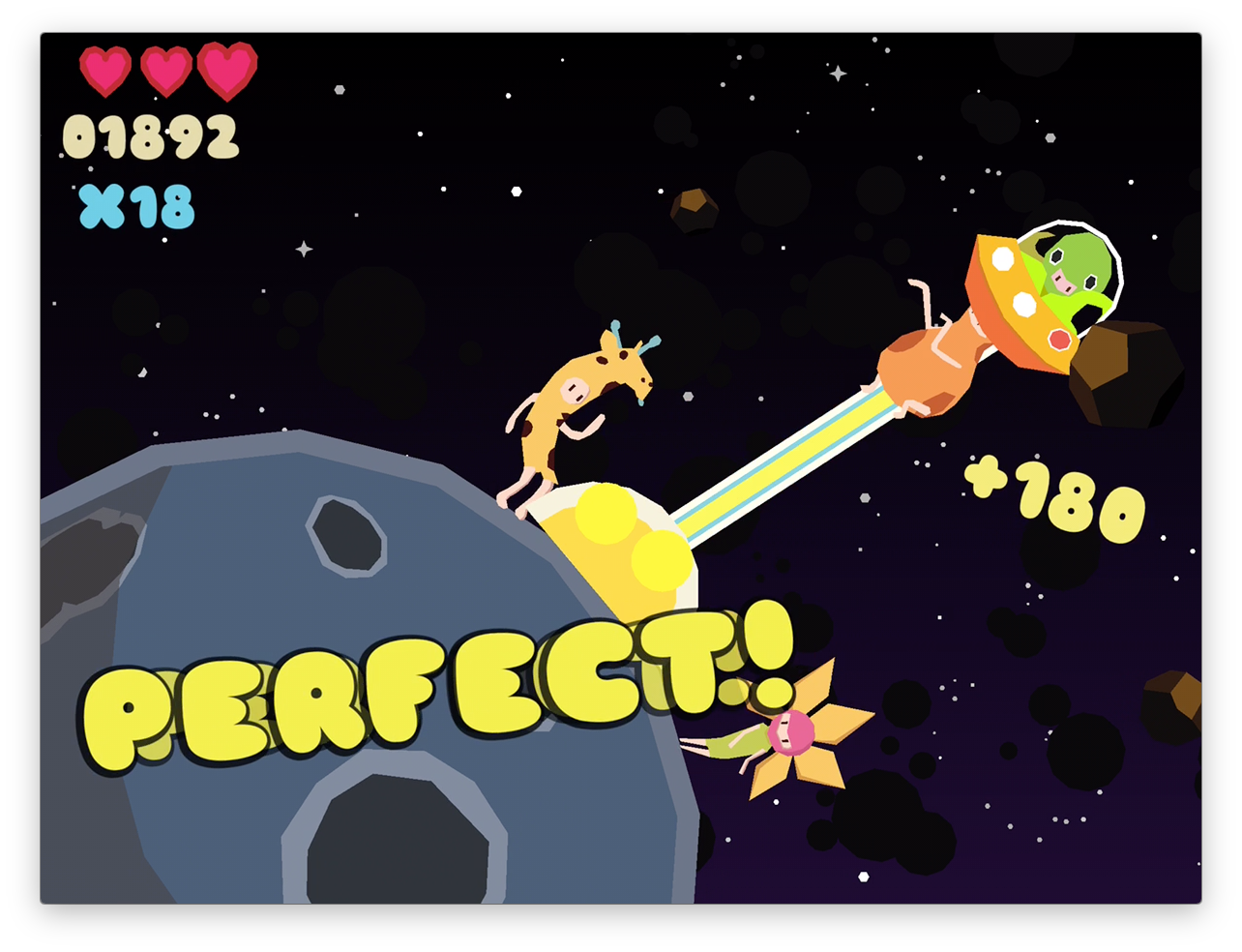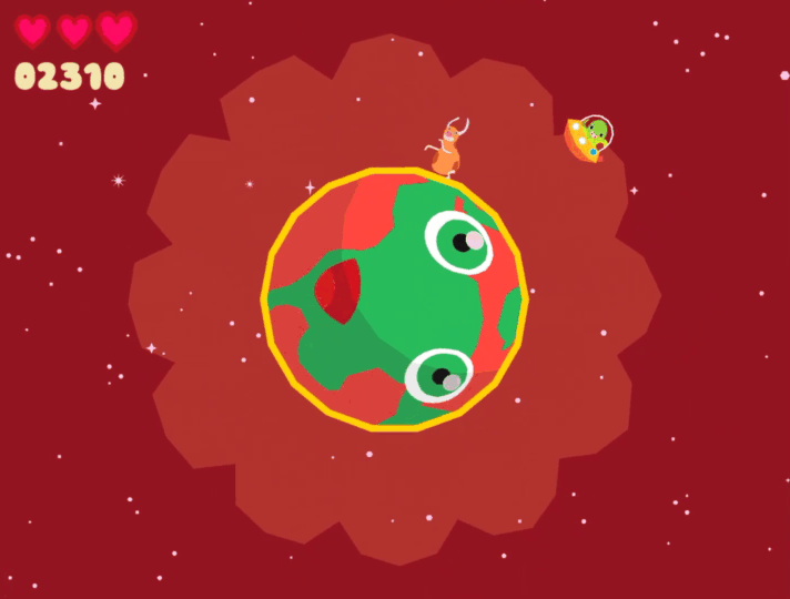행성의 표면에서 이동하는 동물들을 박자에 맞추어 제거하는 독특한 방식의 리듬 게임입니다. 게임을 시작하면 토끼, 기린등 동물의 탈을 쓴 캐릭터들이 음악과 리듬에 맞추어 춤을 추면서 행성의 둘레를 이동합니다.