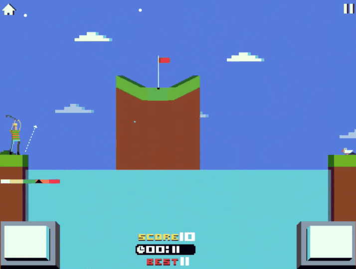 골인을 성공하면 시간이 추가되고 계속해서 또 다른 지형이 솟아오릅니다. 플레이어는 제한시간 동안 최대한 많은 골을 넣어야합니다.